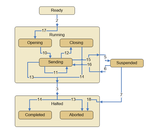 The Sending state is the activity state for the transfer in which the data is moved from the source to destination.