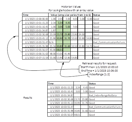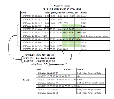 In some cases, Servers are required to return the newest or oldest available data point for a historical Node; Clause A.2 recommends the way that a Client should request this information so that Servers can optimize this call, if desired. Although there are multiple calls that could return the first/oldest data value, the recommended practice will be to use the StartOfArchive Property.