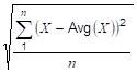 where X is each Good raw value in the interval, Avg(X) is the average of the Good raw values, and n is the number of Good raw values in the interval.