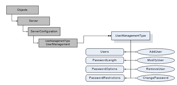 The UserManagement Object defined in Table 20 is used to manage users known to the Server.
