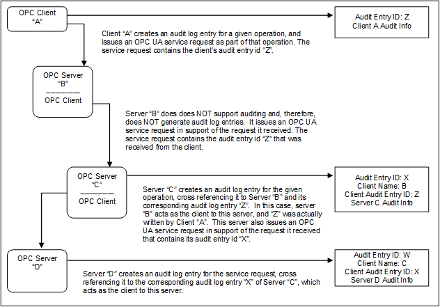 OPC provides security related to Audit event generation, but does not define Audit Logging requirements or tools for analysing audit records |